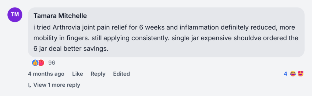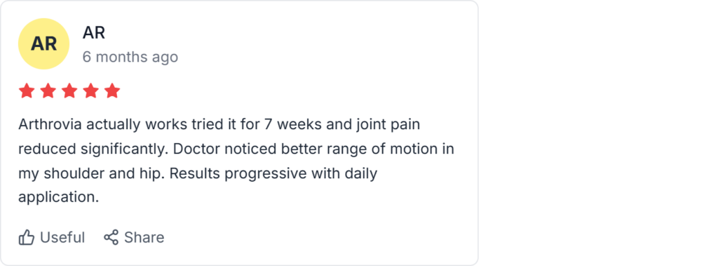 Most Arthrovia reviews show users notice warming sensation and initial pain relief within 15-20 minutes of application, with measurable joint pain reduction and mobility improvements appearing after 4 to 6 weeks of consistent twice-daily use.