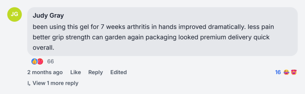 tbh been using congelum cream 8 weeks now and joint pain way reduced. no more morning stiffness fingers move better jar looked professional delivery ok overall satisfied.