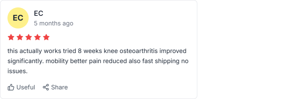 | Effectiveness | Significant joint pain reduction and mobility improvement | 4.9 |