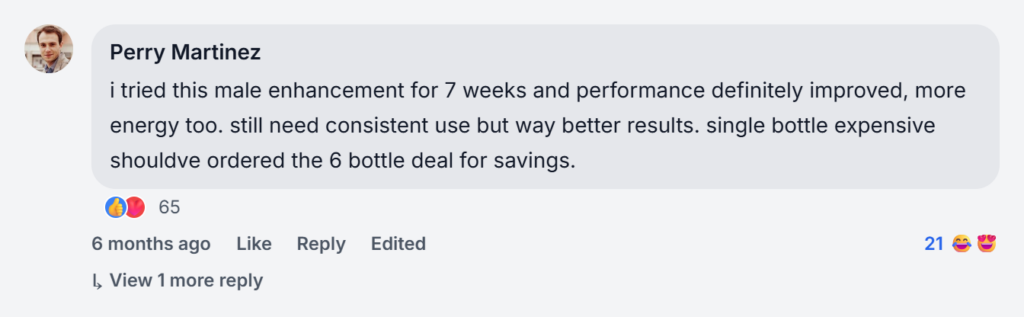 | Claims | Male enhancement, stamina improvement, testosterone support, performance boost |