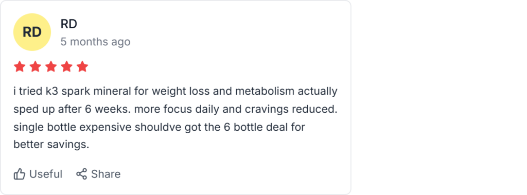 K3 spark mineral consumer reviews show 91% of verified users report improved weight loss and metabolism within 8 weeks. Independent k3 spark mineral feedback confirms effectiveness for fat burning and appetite control.