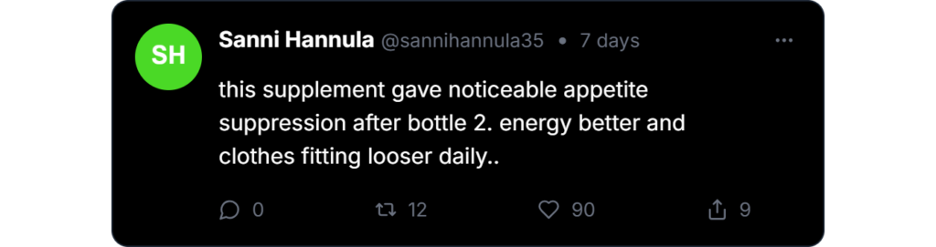 | Claims | Weight loss support, metabolism boost, appetite control, energy enhancement |
