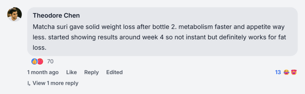 Most matcha suri reviews show users notice initial energy boosts within 1-3 days, with measurable weight loss after 3 to 4 weeks of consistent use as metabolism optimizes. Full fat burning benefits typically appear by week 8-12 with sustained supplementation and caloric deficit.
